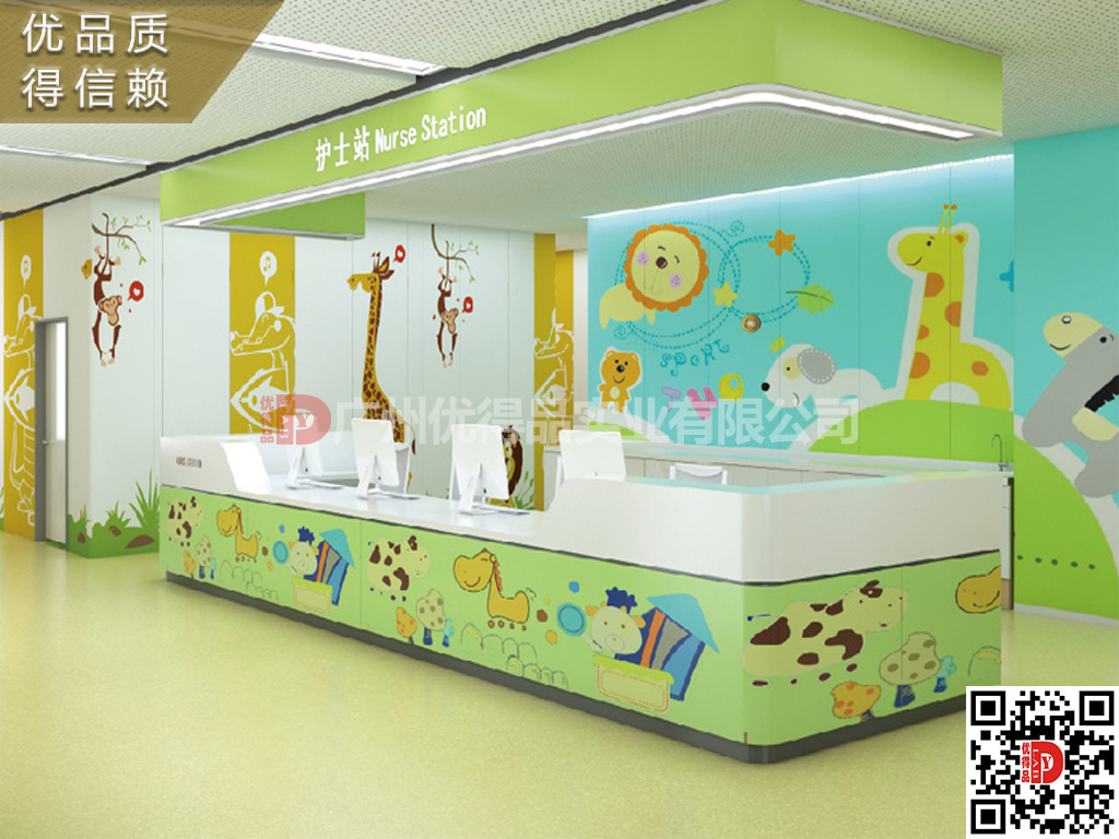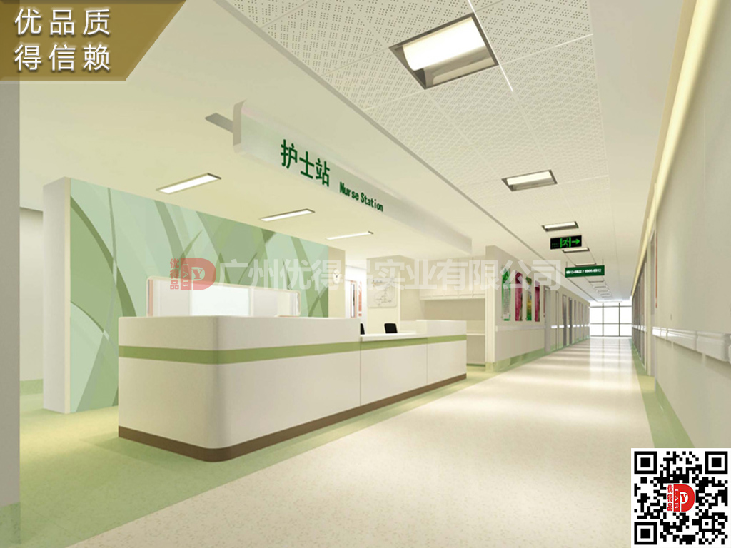 ⑤配置:护士站由三抽柜、主机柜、键盘架、组成。全段设有暗装专用线槽,如:数据线、电源线、电话线等,使用安全,易于检修、清理。